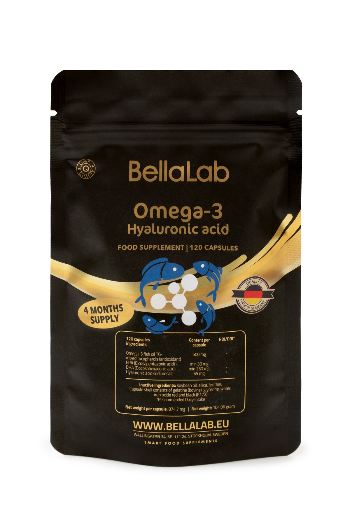 Uztura bagātinātājs Omega 3 Hyaluronic Acid ir ideāla kombinācija ikvienam, kam rūp sava veselība un skaistums. Šis uztura bagātinātājs apvieno divus katram organismam svarīgus savienojumus – omega 3 polinepiesātinātās taukskābes un hialuronskābi.